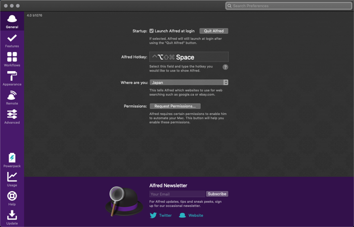 でも、すぐに始めたい場合は、当社のWebサイトからAlfred4をダウンロードしてください。Powerpackの機能を最大限に活用するには、必ず新しいPowerpackライセンスを入手するか、既存のライセンスをアップグレードしてください。
