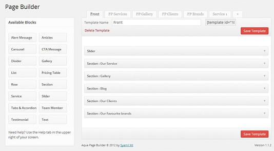 ドラッグ・アンド・ドロップタイプのページビルダー(Aqua Page Builder)。