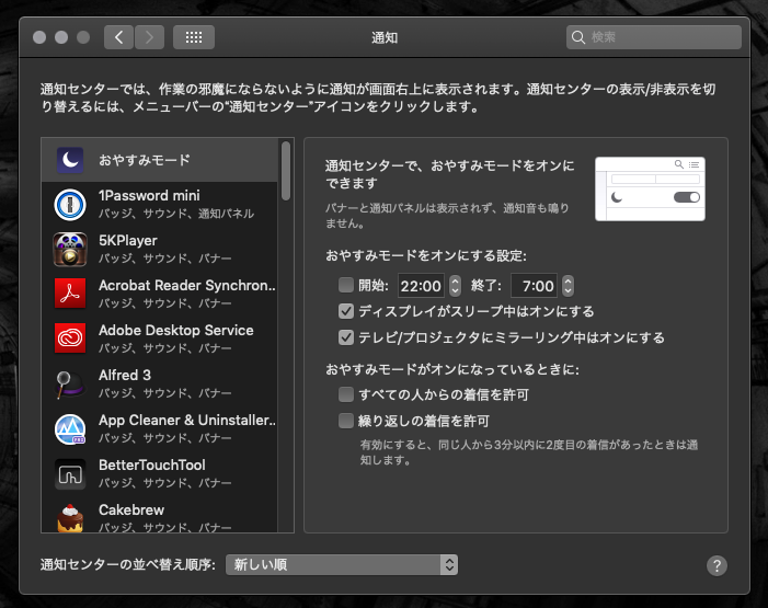 それでは、Macの「通知」をオフにする「おやすみモード」を設定してみましょう。