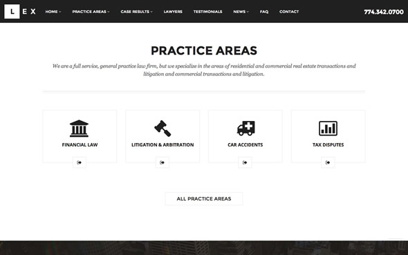 不動産関連や物販と違い、「法律事務所のホームページだから必要な機能」というものは無いので、弊社で士業関連のウェブサイトを制作する場合は他のメジャーなコーポレートサイト系をベースにデザインしますが、個人で必要充分なサイトを短期間で、という場合には向いているかもしれません。