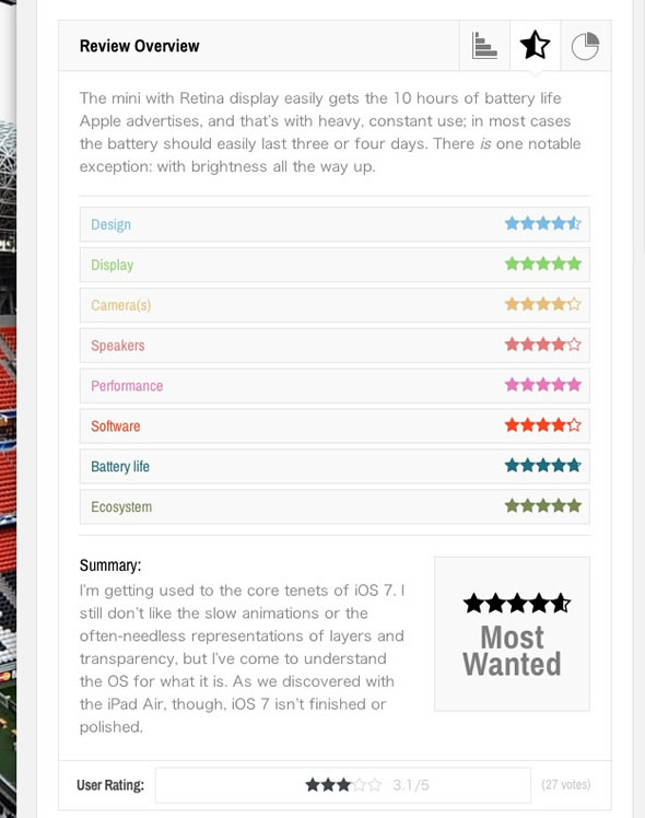 比較、レビューサイト用の評価用パーツ。棒グラフ、星、半円グラフが利用可能です。