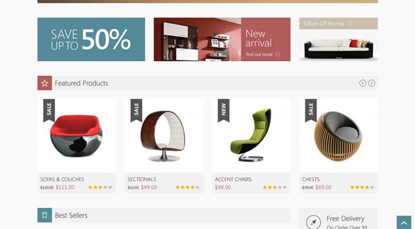 特徴的なナビゲーション、レイヤー設定可能なスライダー、Ajax購入ボタンなどを備えたMagento用のテーマ。
