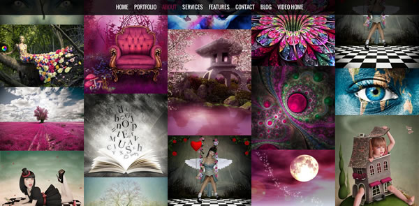 グリッド間の隙間が無いタイプ。トップページをフルサイズのスライドショーにする事も可能です。