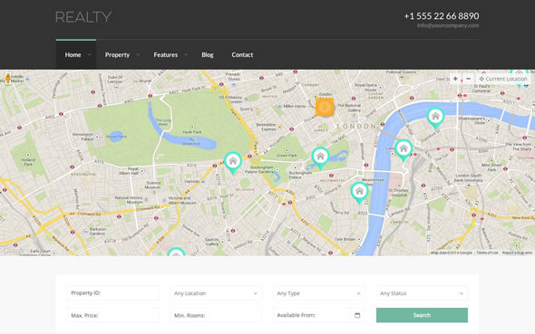 メインビジュアルには物件紹介スライダーか、物件情報のグーグルマップが利用出来ます。