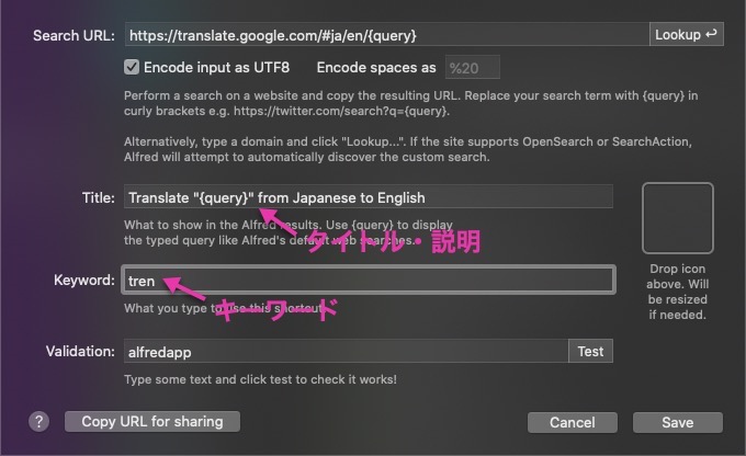 『Alfred web searches』をカスタマイズしてグーグル翻訳を使ってみる