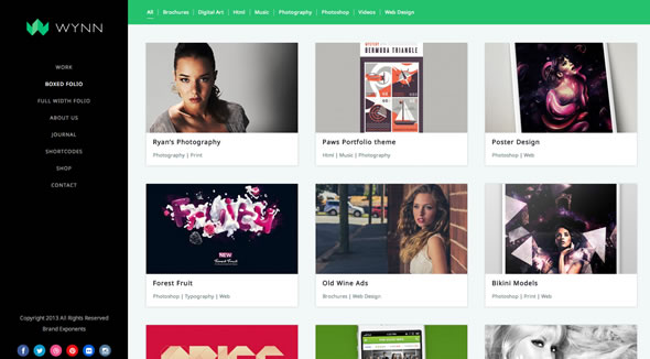 フォトグラファーやホームページ制作会社の事例集にも良さそうな、美しいフルスクリーン/グリッド型のワードプレス用ポートフォリオテーマ。